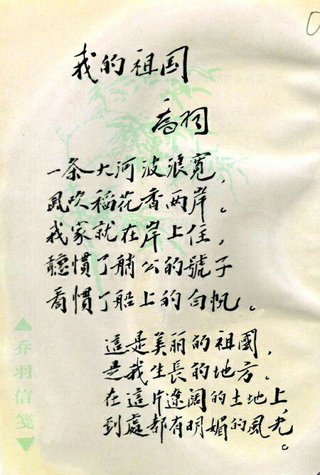 乔羽说他以前只见过黄河,没见过长江,印象之强烈便引出了这首歌词,但这只是一种引发,不能代替别人的亲身感受。而用‘一条大河’就不同了,每个人心里都会有一条故乡的河,无论将来你到了哪里,想起它来一切都如在眼前。沙蒙思考了片刻,“就它了”,拿起稿子就走。
