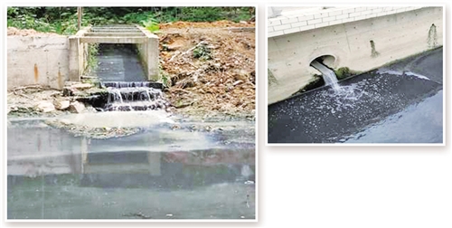 广东清远,裹挟着垃圾的污水倾流而下进入海仔大排坑。(中央第五环保督察组供图)