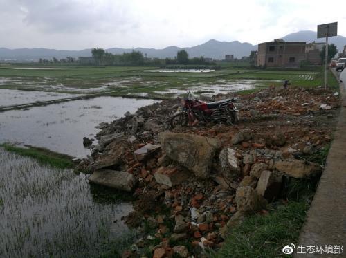 2016年第一轮中央环保督察期间,督察组共转办6起相关群众投诉,近期“回头看”进驻不到一个星期又接到7起举报。为此,中央第六环保督察组于6月11日由朱小丹组长亲自带队冒雨赶赴现场了解情况。一路所见,建筑垃圾随意堆放路边,特别是在通往三善堂临时垃圾堆场的路上,两边随处都是建筑垃圾,有的已经侵占稻田。