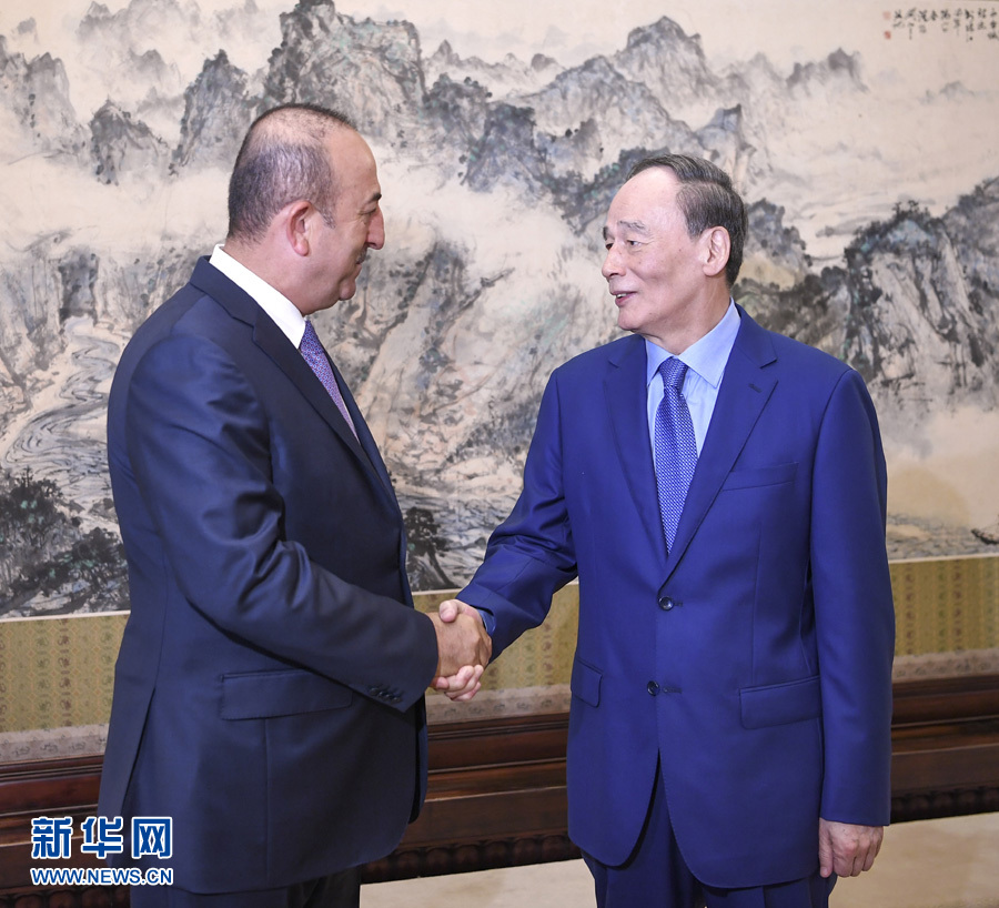 6月15日,国家副主席王岐山在北京中南海会见土耳其外长恰武什奥卢。 新华社记者张领摄