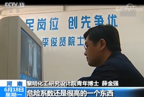 黎明化工研究设计院青年博士 教授级高工 薛金强:他(李俊贤院士)做的是796燃料,是一种硝酸酯的化合物,危险系数很高的一个东西,像现在我们建的都是防爆实验室,当初根本没有这些东西。但是李院士就带头做的,他当初说的一句话就是,如果国家需要,我们就做,我们受感动还是很大。