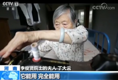 李俊贤院士的夫人 丁大云:这就是最老的一个床,从青海搬下来的,还有这个缝纫机也是,跟了我用了多年,我一直在现在还在用它。有时候补点东西,哪个衣服哪坏了,我也把它补一下,完全能用。