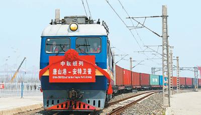图为中国唐山港至比利时安特卫普的中欧班列开通。本报记者 史自强摄