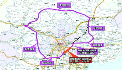 据介绍,首都地区环线高速公路(通州—大兴段)起点为大兴区采育镇韩营村南侧市界,与河北省廊坊市段规划线位相接,线位折向东北,经大兴区采育镇以及通州区于家务镇、永乐店镇及漷县镇,终点为通州区西集镇赵庄村北侧市界,与河北省香河县段规划线位相接。