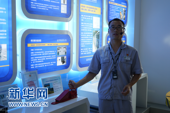 周苗生现场讲解并展示技术改革成果。新华网 王頔摄