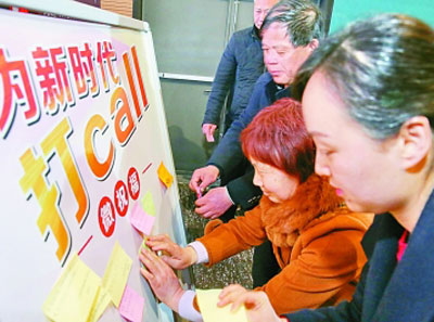江苏省南通市党员在宣传栏上送上对祖国的祝福。光明图片/视觉中国