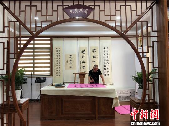 图为:村民正在文化礼堂内练习书法。 张勇 摄