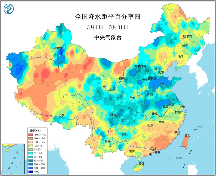 原因主要还是西太平洋副热带高压系统强度偏强,面积偏大,脊线位置偏北、西伸脊点位置偏西,来自西太平洋的暖湿气流向我国南方输送水汽进程受阻,南方降水偏少,梅雨进程推迟。