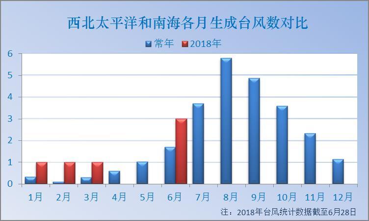 正常年份,台风活跃季节是7-10月,台风生成数量占全年的70.5%。8月是全年生成台风数量最多的一个月,平均每周生成1个多台风。常年6月会有1.7个台风,今年6月有3个台风生成,所以也不少。进入盛夏,台风开始粉墨登场,我们需要加强防灾减灾救灾和趋利避害的应对工作,切实做好台风生成登陆影响等监测预测评估和服务工作。