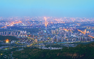 ▲从京西定都峰上俯瞰华灯初上的长安街及北京城(5月30日摄)。