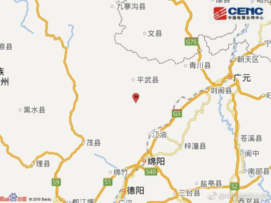四川绵阳市平武县发生4.0级地震