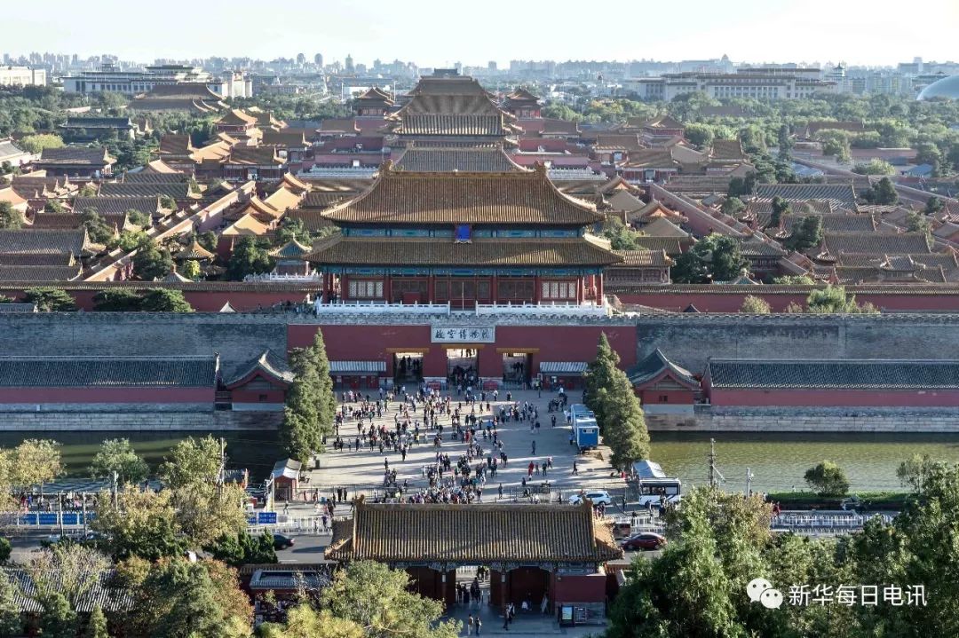 从景山上俯瞰故宫博物馆(2015年10月8日摄)。新华每日电讯记者罗晓光 摄
