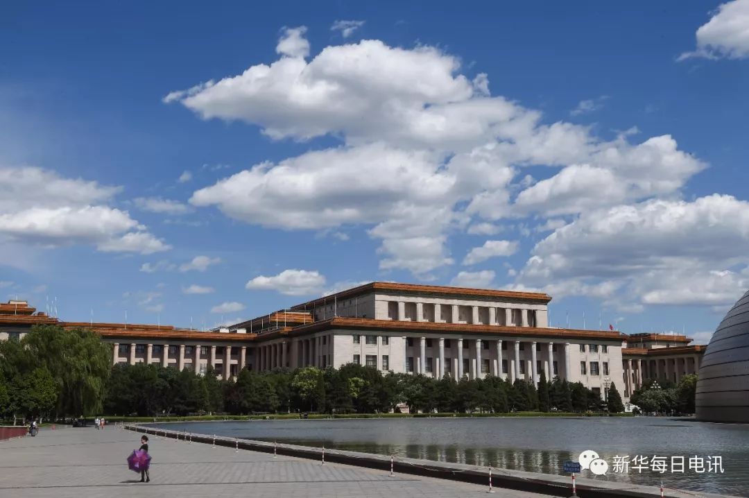 蓝天白云下的人民大会堂(2015年6月11日摄)。新华每日电讯记者罗晓光 摄