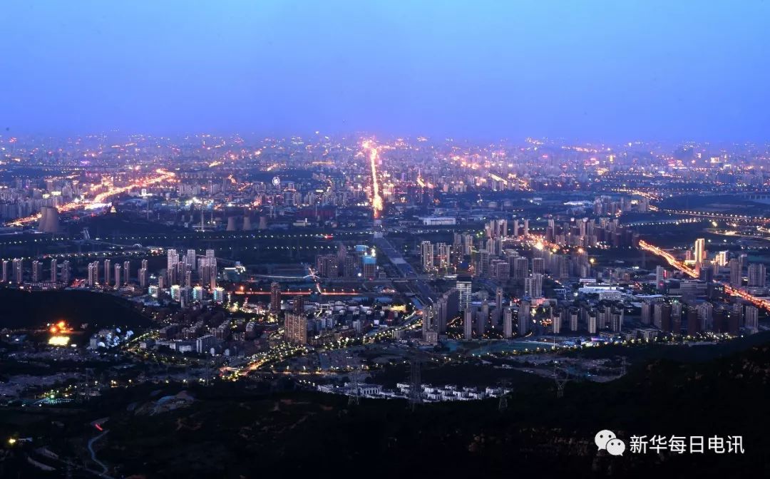 从京西定都峰上远眺华灯初上的长安街及北京城(5月30日摄)。新华每日电讯记者罗晓光 摄