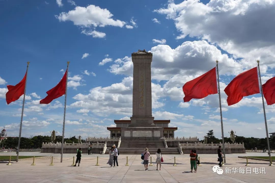 天安门广场上,人民英雄纪念碑两侧红旗招展(2015年6月11日摄)。新华每日电讯记者罗晓光 摄