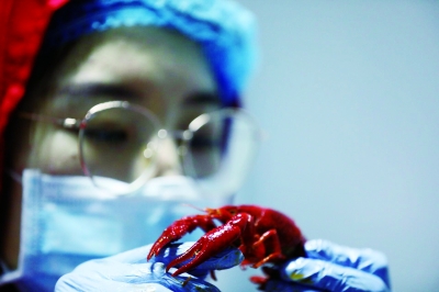 在湖北潜江的一家小龙虾加工厂里,25岁的山东妹子曲云潇每天不停地剥虾、吃虾,她是一名专职“品虾师”。