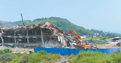 重庆石柱县,一个工业园竟然建在水磨溪湿地自然保护区内。图为最近当地政府进行整改,正在拆除一家工业企业建筑。