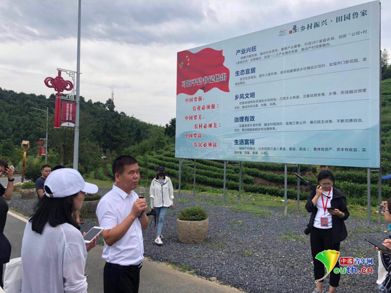 朱仁斌手持话筒向记者介绍鲁家村发展情况。中国青年网记者 唐希 摄