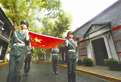 7月1日清晨,中共一大会址举行升国旗仪式。