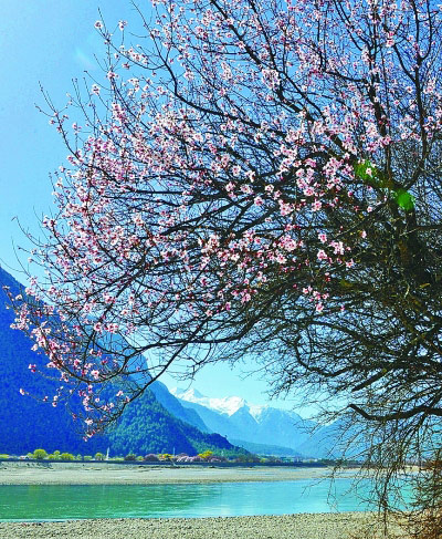 西藏米林县雅鲁藏布江畔桃花盛开。新华社发