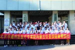 为了认真贯彻落实北京市通州区委、区政府关于对口支援、精准帮扶的指示精神,6月28-30日,北京市通州区卫生和计划生育委员会组织由首都医科大学附属北京潞河医院、东直门医院东区、通州区妇幼保健院、通州区疾病预防控制中心、通州区中西医结合医院,以及通州区于家务社区卫生服务中心、永乐店社区卫生服务中心、张家湾社区卫生服务中心8家医疗卫生机构的46名医疗专家组成医疗团队,奔赴内蒙古通辽市奈曼旗,开展以帮扶、义诊、巡诊、培训等形式多样的对口帮扶行动。活动受到当地群众热烈欢迎,为通州区卫计委与奈曼旗的对口健康帮扶工作开启了合作的新篇章。