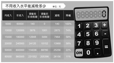 这一综合所得税率和级距是以此前的工资薪金个税收入标准为基础,因此这次综合所得的七档税率跟以前一致,没有变化。但税率级距有了明显变化,主要是3%、10%、20%三档税率的级距明显扩大,25%的税率级距有所缩小,而30%、35%、45%这三档较高税率的级距保持不变。月薪1万,税改后减税降幅74%,一年有望减税2875元。月薪2万减税降幅58%,一年减税13968元。沈阳晚报、沈报融媒记者 梅天磬