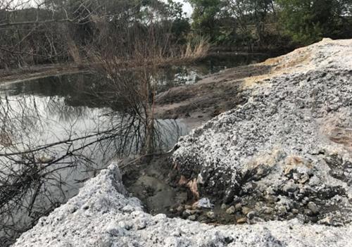 资料图:江苏镇江,灰渣和工业废料随意弃置在附近水塘,污染严重。 图片来源:生态环境部网站