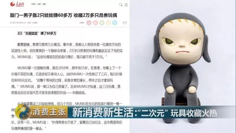 “手办”、“潮玩”、“改娃”,这些产品名称也许您会感到陌生,但作为“二次元”经济的代表性衍生品,它们正受到越来越多成年人的喜爱和推崇,据说还有投资价值。最广为人熟知的就是日本2007年出品的,限量版潮流玩具“失眠娃娃”,当初售价大约七千元人民币一个,但还没过几年,价格就突然飙升到三、四十万元一个。