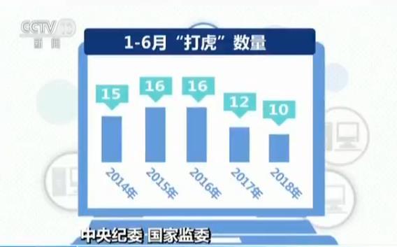 据中央纪委国家监委网站统计,2018年上半年共有10只“老虎”被打落。从往年的数据来看,2014年上半年“打虎”15只,2015,2016年上半年“打虎”数量均为16只,2017年上半年则有12只“老虎”落马。自2014年以来“打虎”数量维持两位数背后,说明反腐败斗争形势依然严峻。