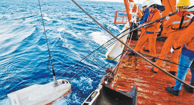 科考队员在回收单拖体瞬变电磁仪。中国大洋协会供图
