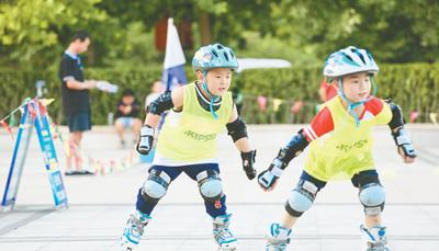 北京市通州区运河文化广场,小朋友在滑轮滑。王丹枫摄