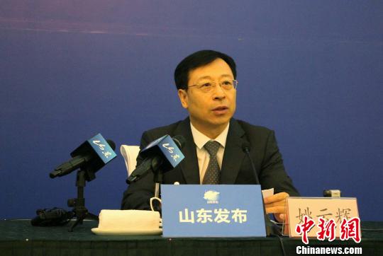 山东省环保厅副厅长姚云辉在发布会上介绍有关情况。 赵晓 摄