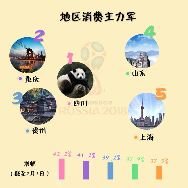 全国球迷都在吃,“吃货”到底哪家强?据美团外卖提供的近期全国各省份消费数据显示,四川、重庆、贵州、山东等地夜宵订单较世界杯开赛前增幅迅猛,跃居全国前列。足以说明当地可能有着庞大的球迷群体,且年轻的“夜猫子”较多,夜宵消费力十分强悍。