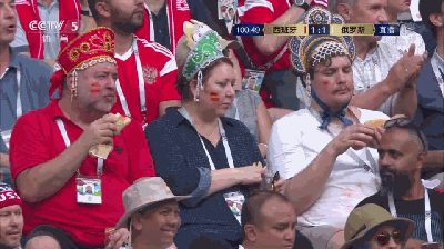 中国球迷在吃,国外球迷看球时嘴也没闲着。