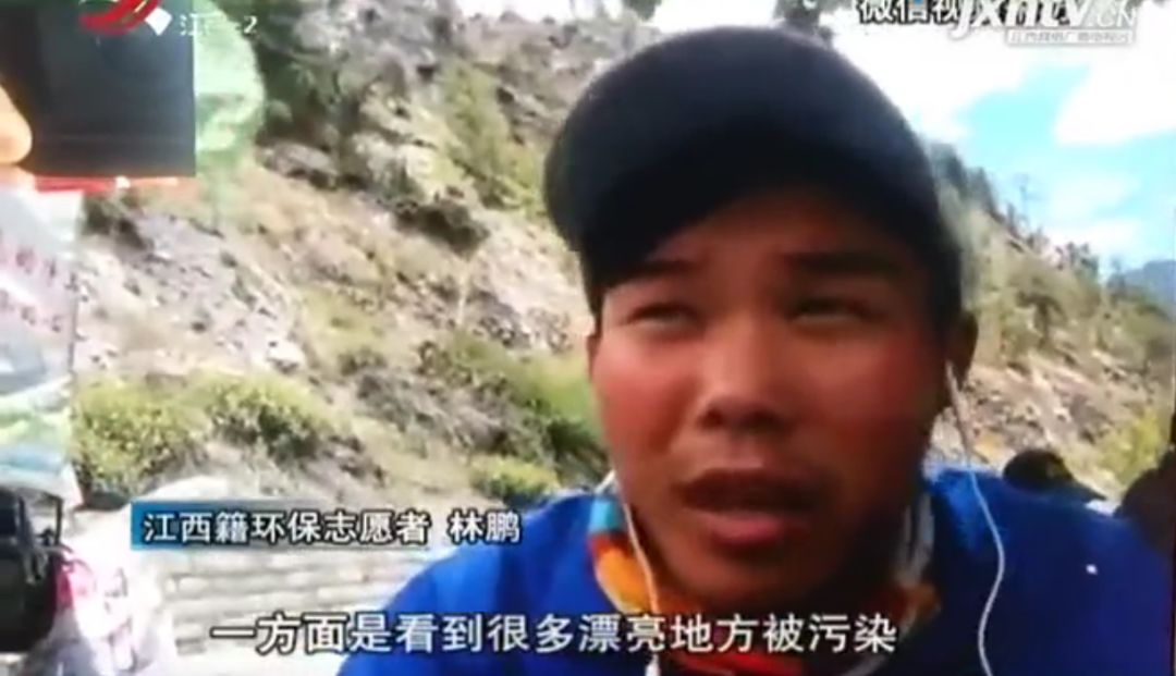 当记者问他为何要做这件事时,林鹏回答道:“一方面是看到很多漂亮地方被污染,我就一直想到说要不要走一趟,专门为环保而走。还一个就是之前骑单车环游,遇到好多好心人给予我很多帮助,也希望通过这件事做回馈。”