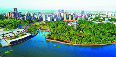江西省共青城市甘露公园的湖泊镶嵌城中,形成“城在水中、城水相依”的风光。近两年来,按照“赣江新区共青,绿色生态家园”的目标,共青城市实行最严格的生态环保政策,坚决杜绝有污染企业入驻,全面退出规模化养殖企业,建成了一大批生态公园。况建摄/光明图片