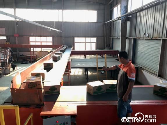 砀山申通快递公司工人正在流水线上扫码装车。(孔华/摄)
