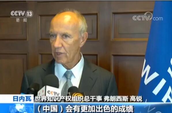 世界知识产权组织总干事 弗朗西斯·高锐:我们看到过去几年中国的排名都在提升,我们希望这样的趋势能够继续,中国会有更加出色的成绩,我想我们所看到的成绩是中国领导层,特别是习主席所精心制定的战略规划将创新置于中国经济发展战略的中心,我们关注到中国经济正在进行大规模的结构转型,正在从依靠劳动力的制造业转向高附加值、知识密集型产业,创新是转型成功的关键。