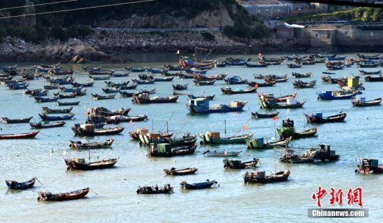 福建省连江县黄岐镇大批渔船回港避风。 王东明 摄