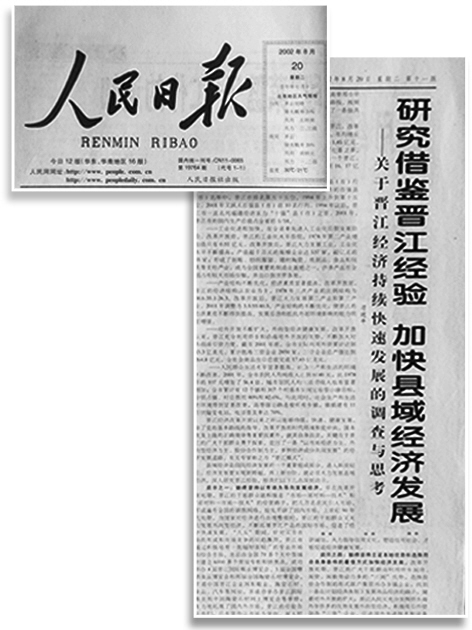 习近平同志撰写的《研究借鉴晋江经验 加快县域经济发展》一文,刊登于2002年8月20日出版的《人民日报》。