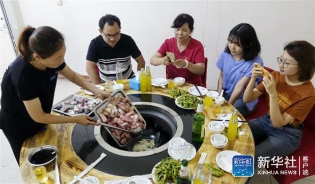 7月10日,游客在霍州营村品尝特色乡村美食“地锅鸡”。