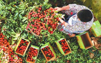 荔枝摘下来,树下装箱,冷链保存,销往全国。去年电商销售占比两成。 刘学懿摄