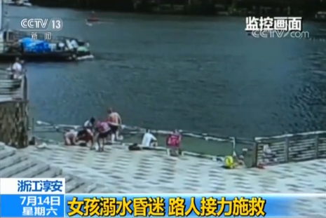 央视网消息:前几天在浙江淳安,一名15岁的女孩在湖边游玩时,不慎落水,被救上来时,已经面色发紫,没有呼吸。危急关头,两名热心游客伸出援手,烈日下跪在地上15分钟,为女孩做心肺复苏,将她从死亡线上拉了回来。