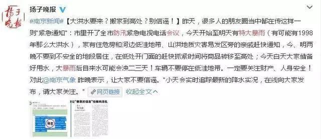 此外,一些微信群也出现了诸如“全市防汛紧急电视电话会议,今天晚上开始至明天有特大暴雨”的谣言,甚至指明会出现类似98年一样大的洪水。