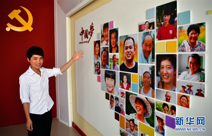 在河南兰考张庄村村委会,讲解员在介绍“村民笑脸墙”(6月21日摄)。 新华社记者 冯大鹏 摄