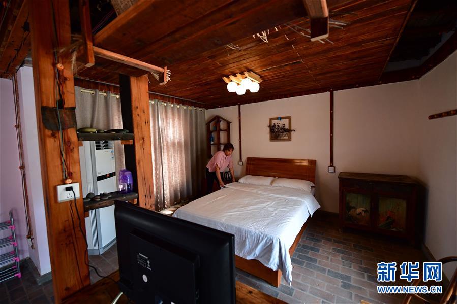 在河南兰考张庄村,村民在整理自家经营的民宿的客房(6月21日摄)。新华社记者 冯大鹏 摄