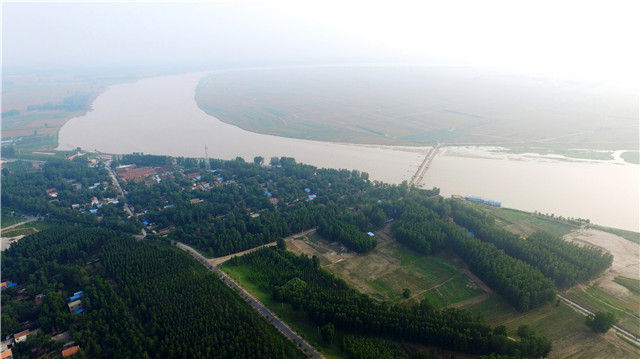 这是河南兰考张庄村附近蜿蜒的黄河河道(6月19日无人机拍摄)。新华社记者 冯大鹏 摄