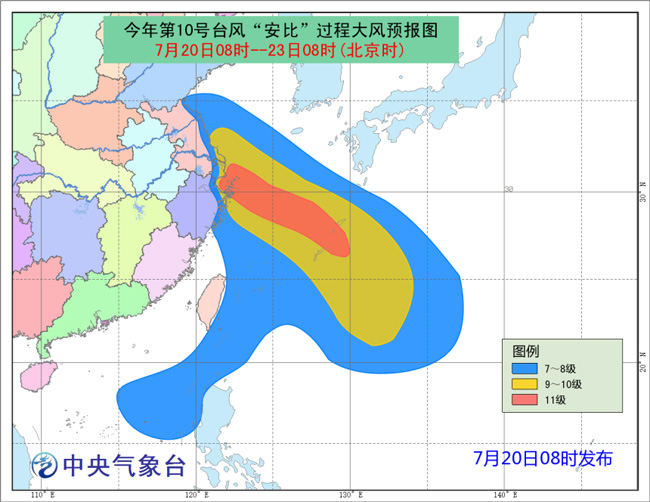 董林:受台风影响,20日至23日,华东沿海及台湾以东洋面、东海、黄海南部的风力将逐渐加大到7级以上,“安比”中心经过的附近海面或地区以及舟山群岛、长江口区、杭州湾的风力有10~11级,阵风可达12~13级。