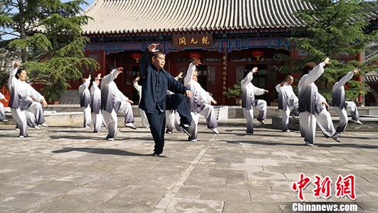 伏羲太极道创始人沈西京在天水伏羲庙内为“徒弟”们教学。(资料图) 闫姣 摄