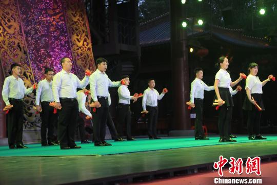 群口快板《天安门广场看升旗》。 沈殿成 摄